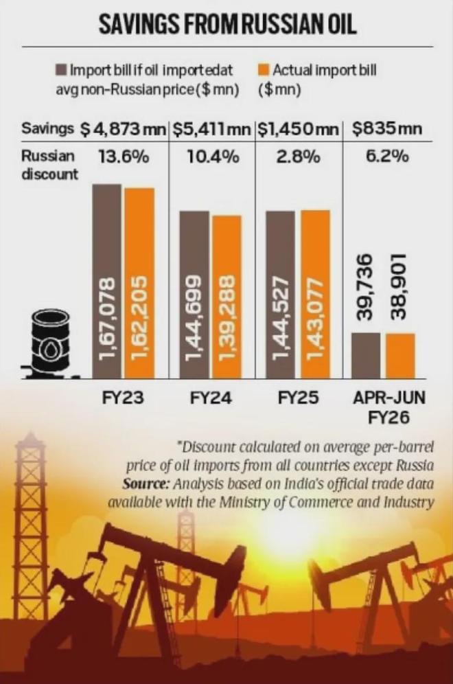 《印度快报》9月2日报道,过去三年半,印因进口俄油节省至少126亿美元($12.6 billion)开支。据悉,乌克兰危机爆发后,印迅速把握俄石油折价机会,成为俄原油第二大进口国。2022-23财年,俄油占印原油总进口约五分之一,俄油平均到岸价比非俄原油便宜13美元,俄对印实际折扣为13.6%。2023-24财年,俄对印折扣缩小至10.4%,但进口量从上一财年的3.73亿桶(373 million)激增至6.09亿桶(609 million),印因此节省的开支反而升至54.1亿美元($5.41 billion)。2024-25财年,俄对印平均折扣仅为2.8%,印节省支出14.5亿美元($1.45 billion)。分析人士表示,俄折扣力度降低的主要原因是油价下跌、美西方限制导致俄油外送的运输与保险成本上升。尽管如此,对印而言俄油到岸价格较其他石油来源仍更优惠。此外,印进口俄油还在一定程度上缓解全球油价上涨。印若全球停止采购俄油,恐导致国际油价剧烈波动,使单桶价格从当前65美元飙升至90-100美元。因此,印面对美关税压力并未退让原因有二:一方面,出于经济考量,若折扣原油供应减少且全球油价同时上涨,印进口石油年支出或最多增加110亿美元($11 billion)。另一方面,印强调战略自主九游体育,希望在遵循全球贸易规则的前提下,坚持自主选择能源贸易伙伴。